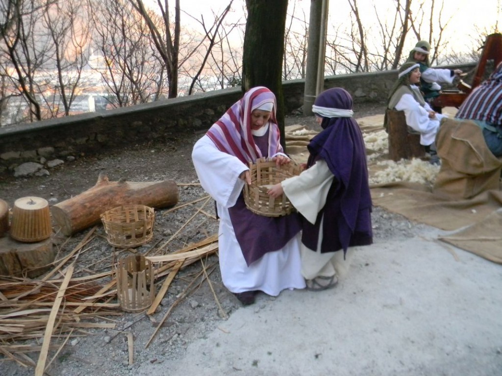 Lungo tutta la strada che porta al santuario si trovavano i figuranti del presepe vivente, intenti nel mostrare come si svolgevano gli antichi mestieri.