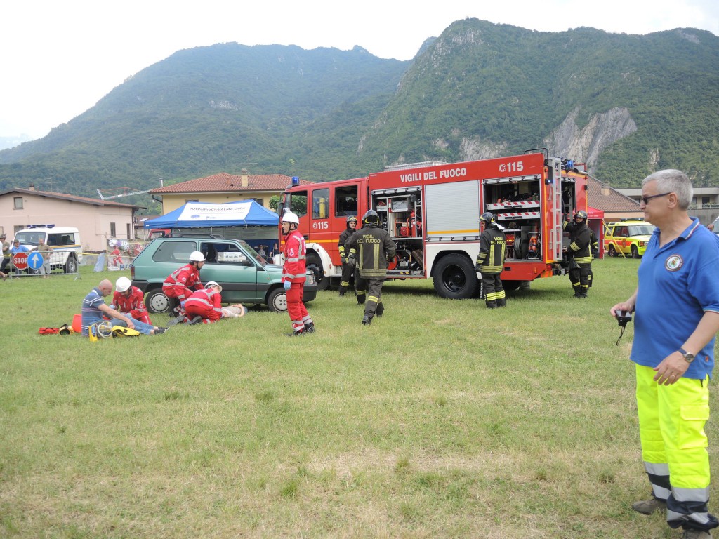 L’incidente nello specifico simulava l’investimento di una persona e il conseguente operato del conducente, dei soccorsi sanitari e dei Vigili del Fuoco. In tanti, nonostante il meteo ballerino, hanno voluto partecipare all’iniziativa, occasione per vedere e imparare l’operato sinergico delle diverse associazioni di soccorso.