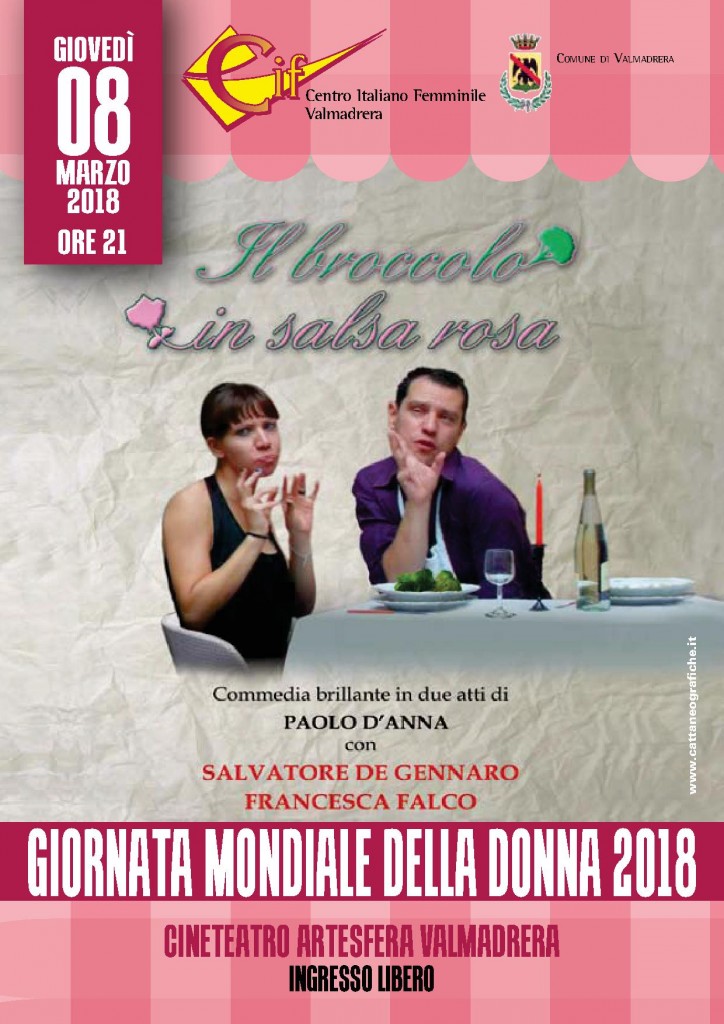 VALMADRERA – L’amministrazione comunale di Valmadrera e il Centro Italiano Femminile di Valmadrera ricordano che in occasione della Festa della Donna si terrà lo spettacolo “Il broccolo in salsa rosa”, commedia in due atti.