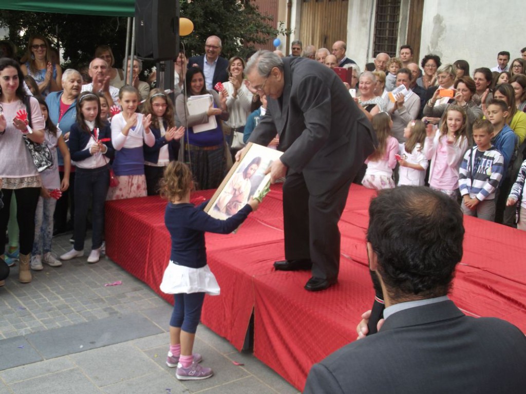 Al lati della piazza cittadina vi era un ricco buffet che il parroco ha voluto offrire a tutti i cittadini, ma prima di dare il via al conviviare, una bimba giunta a cavallo ha consegnato al sacerdote un grosso libro contente la storia dei suoi 18 anni a Valmadrera e i pensieri che la comunità ha voluto raccogliere in occasione della sua partenza.