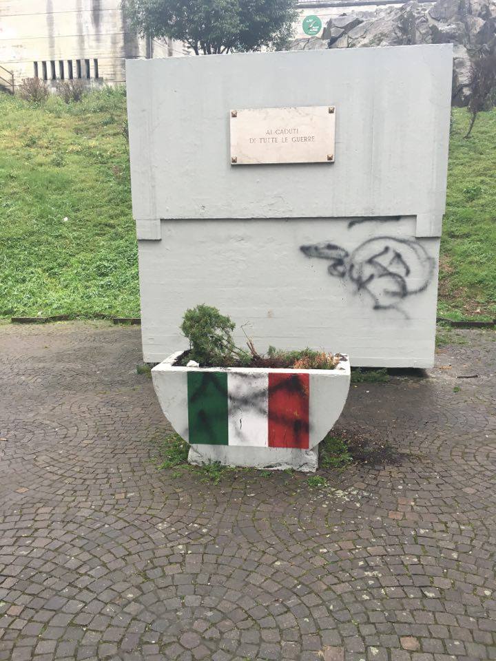 Con la vernice spray, i teppisti hanno sfregiato la bandiera italiana e rovinato con scritte la lapide dedicata alle vittime dei conflitti. Un gesto che sembrerebbe avere matrice politica e che si potrebbe inquadrare nel clima di tensione che da qualche tempo si respira nel lecchese tra estremismi di destra e sinistra.
