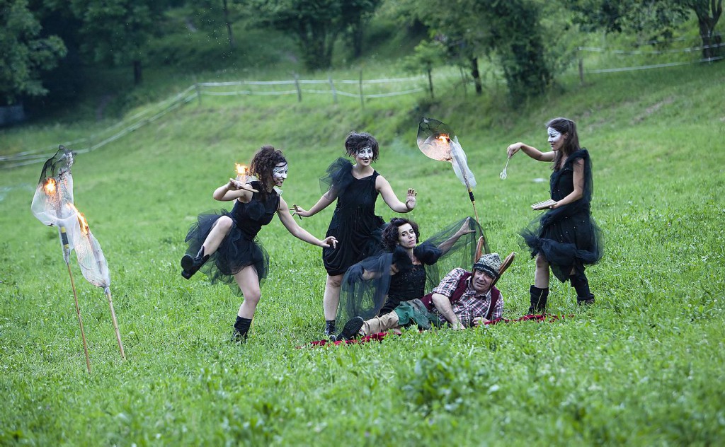 Sogno-di-una-notte_Teatro-Invito_Varenna_2014 (1)La scenografia si annuncia di rara suggestione, tanto più se si considera che l’ambientazione di “Sogno di una notte di mezza estate” (che presenta tre storie intrecciate, collegate tra loro dal matrimonio tra Teseo duca di Atene e Ippolita, regina delle Amazzoni) in vari passaggi della trama è per l’appunto in boschi e foreste.