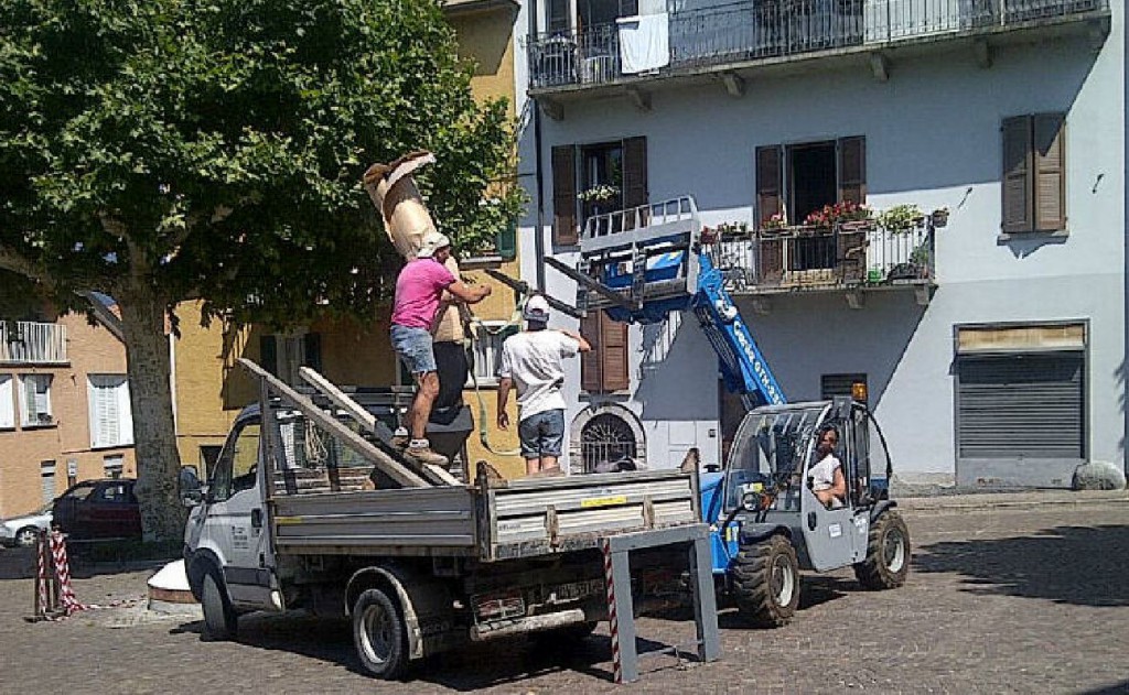 VARENNA – La statua di Alberto Ghinzani che faceva bella mostra in piazza San Giorgio a Varenna, nelle immediate vicinanze della chiesa di San Giovanni Battista, una tra le più antiche del Lario, ha preso la strada della Lomellina.