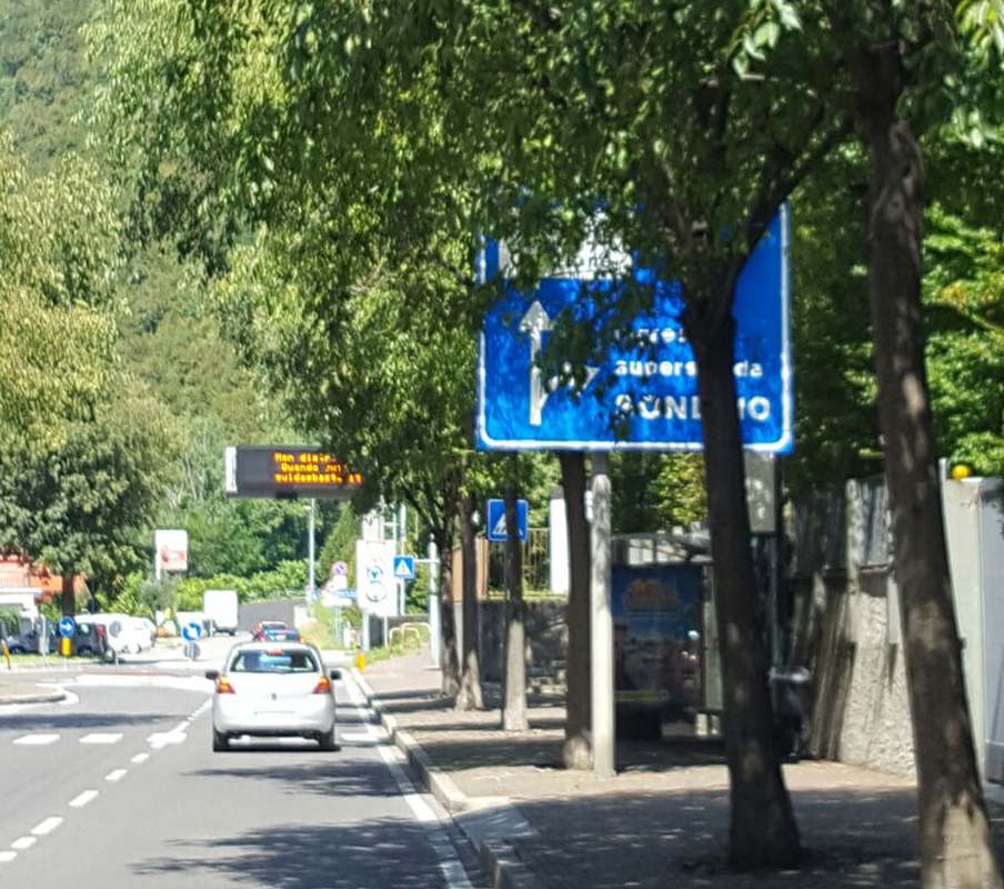 Tornando ai problemi relativi alla cartellonistica stradale, si riscontra lo stesso disagio dovuto alle fiorenti piante in via Pasubio per la segnalazione indicante l’ingresso del tunnel per la SS36, e poco più sopra, in via Montebello.