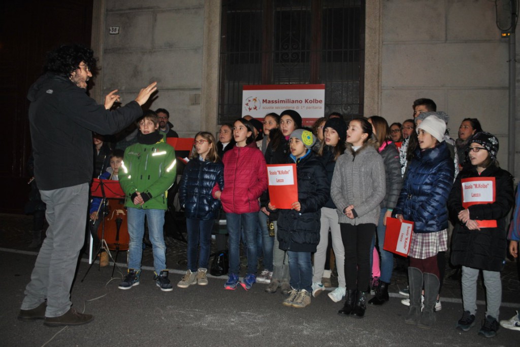 LECCO – Domenica pomeriggio, chi si trovava per le vie del centro di Lecco magari alla ricerca degli ultimi regali di Natale si è imbattuto in una scena comune per molte città inglesi o americane, ma assai rara per la nostra: 20 giovani ragazzi delle medie insieme ad alcuni genitori hanno offerto un bellissimo concerto di Natale itinerante in via Carlo Cattaneo. Si tratta del “bis” all’analoga iniziativa andata in scena domenica 14 dicembre.