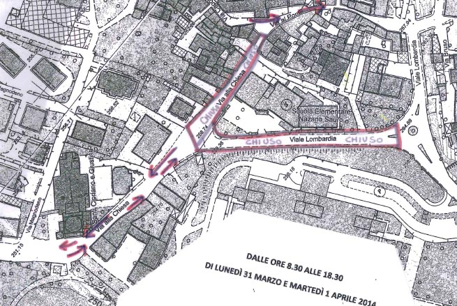 –  istituzione del divieto di transito veicolare in via Alla Chiesa, tratto da viale Lombardia (area di intersezione inclusa) a via Al Ponte.