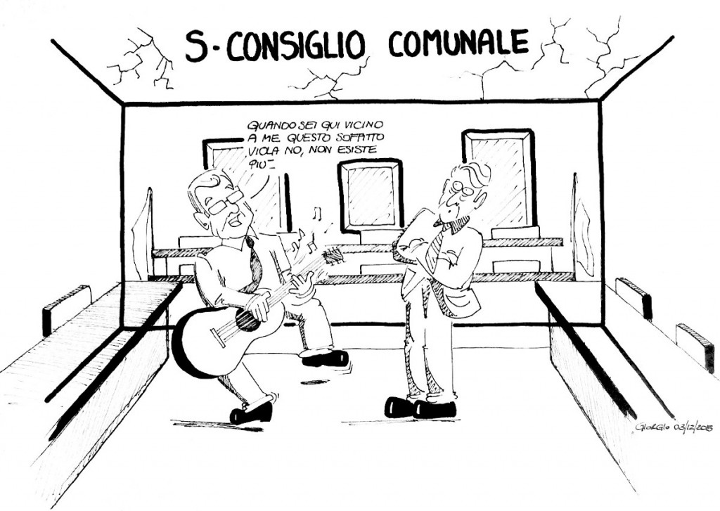 Una situazione, quella degli edifici comunali, che ha ispirato la matita di Giò: una vignetta in musica quella di questa settimana, con il sindaco Brivio canterino sulle note di uno dei più noti successi di Gino Paoli e accanto a lui il preoccupatissimo assessore ai Lavori Pubblici, Corrado Valsecchi, costretto lunedì a chiudere l’aula e dare il via ai lavori.