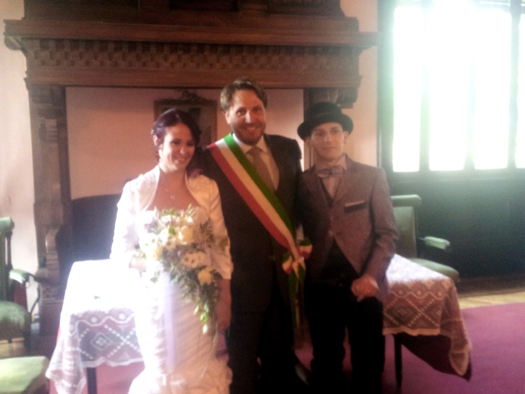 Le nozze sono state celebrate nell’incantevole Sala del Camino, al primo piano del palazzo, allestita con le insegne comunali. Al primo cittadino di Oggiono, Roberto Paolo Ferrari, il compito e il piacere di coronare l’unione tra i due sposi.