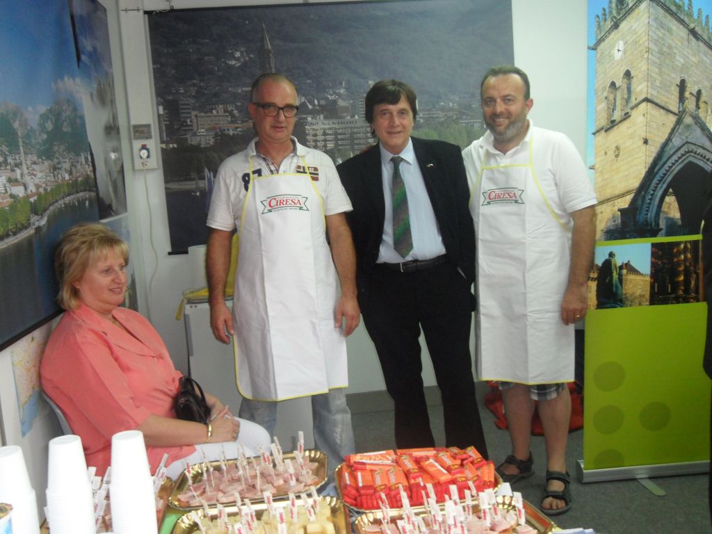 Ospiti Il Comune di Lecco con la propria delegazione capeggiata dal sindaco Virginio Brivio e Il presidente dei Gemellaggi Giuseppe Magni insieme al consigliere Ezio Venturini e con la partecipazione di due volontari Marco Fumagalli ed Attilio Biffi indispensabili amici per la realizzazione di uno stand per la promozione Turistica della Città di Lecco ed di alcuni prodotti della nostra zona gentilmente offerti da Vini Pirovano , Ciresa Formaggi , Icam, salumificio Brivio .