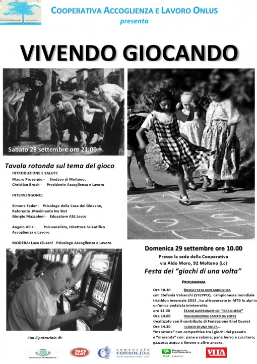 MOLTENO – “Vivendo Giocando”, è questo il titolo della due giorni di riflessione e divertimento dedicata al tema del gioco targata “Comunità Accoglienza e Lavoro”, società cooperativa sociale onlus di Molteno.