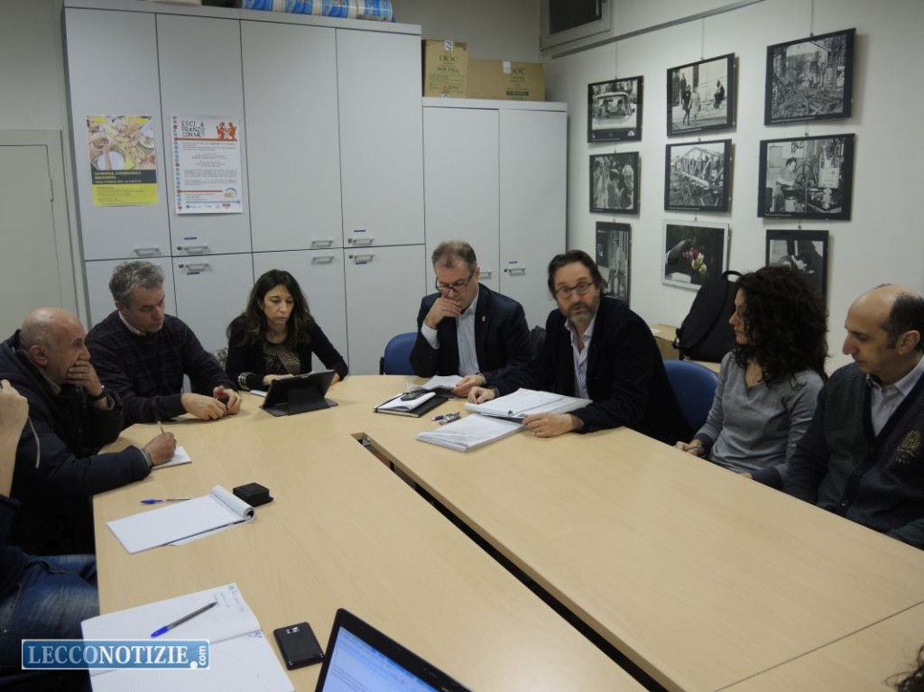 Da sinistra, Virginio Brivio, Paolo Cereda, Claudia Verocunto (Arci Lecco), il consigliere comunale Salvatore Rizzolino e Stefano Simeone