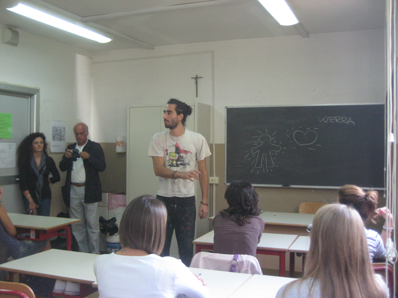 Durante le ore scolastiche, Ivan ha tenuto un seminario sulla poesia pubblica con spunti storici e contemporanei, con citazioni da Manzoni a Pasolini. È seguita una riflessione poetica in cui l’artista ha invitato gli studenti a realizzare dei versi personali o a riflettere su alcune scaglie poetiche.