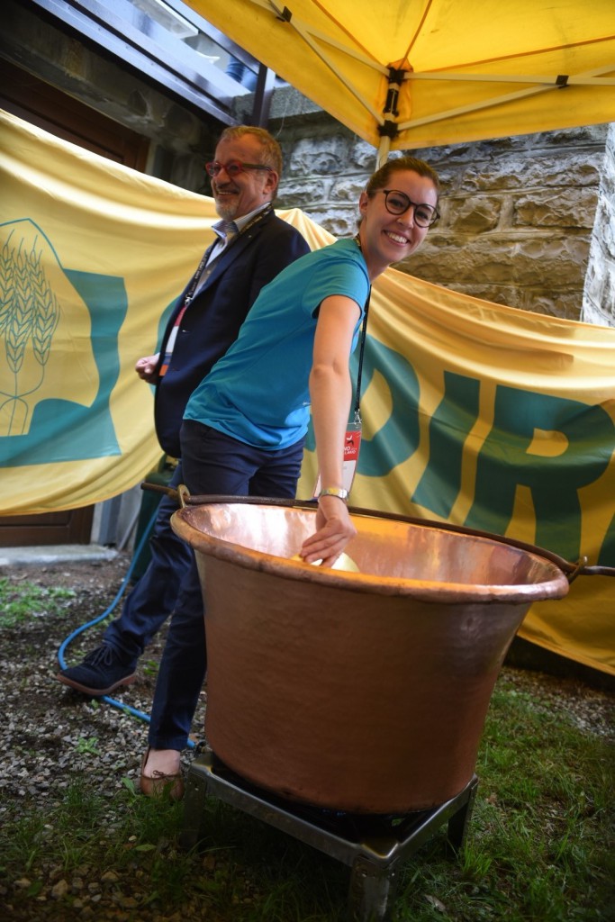 Non solo: grande interesse ha destato la preparazione “in diretta” del Taleggio realizzato con paiolo di rame e mestolo dalla casara ventiduenne Valentina Valsecchi, titolare dell’az. Agr. “Ol Spisotol” di Introbio (Lc).