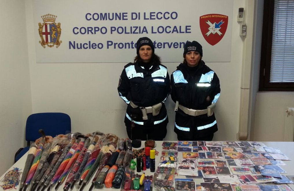 Tra gli oggetti sequestrati ombrelli, cd, bigiotteria. Le operazioni rimangono in linea con quanto veicolato il mese scorso durante la “Giornata della Legalità” organizzata e promossa da Confcommercio Lecco, “Legalità mi piace”.