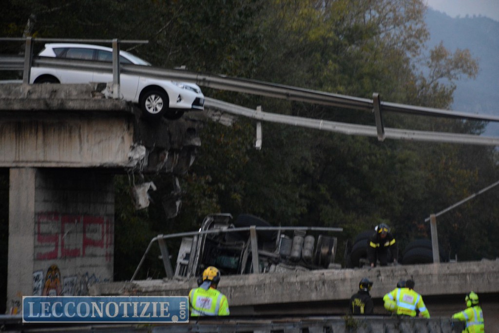 Sette in totale, almeno stando all’ultimo bilancio dei soccorsi, le persone coinvolte nel drammatico crollo: per uno di loro non c’è stato nulla da fare. Gravi le condizioni del camionista che si è schiantato con il suo mezzo pesante sulla Strada Statale 36 e ricoverato in ospedale con più traumi. Tra gli altri feriti ci sono anche tre bambini che non sarebbero in gravi condizioni.