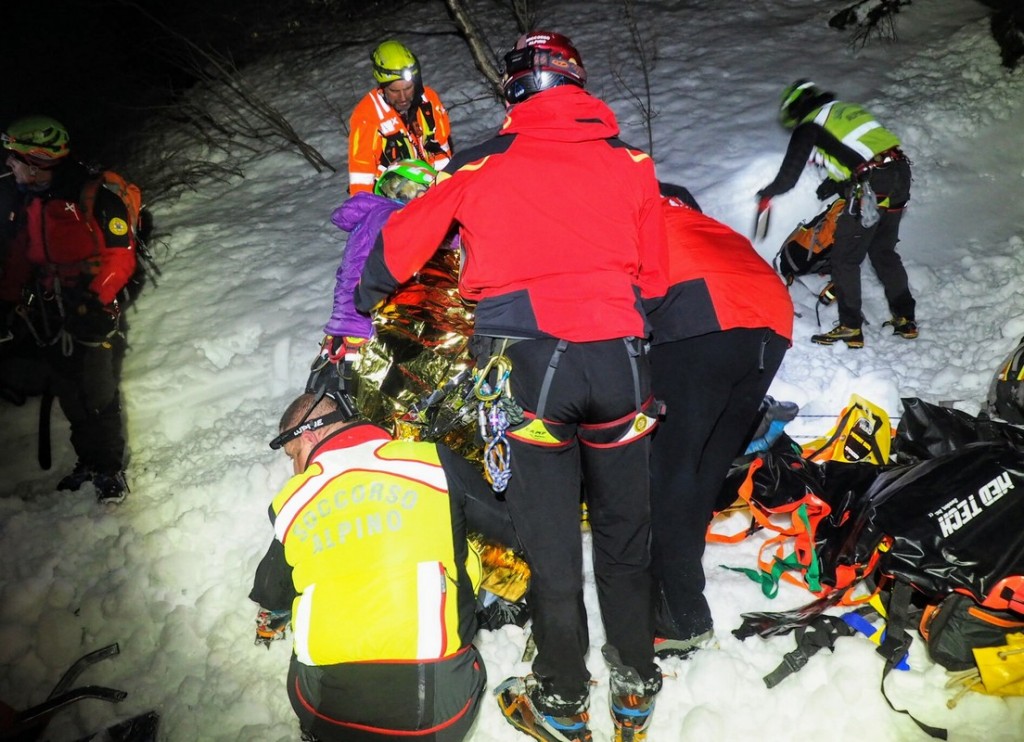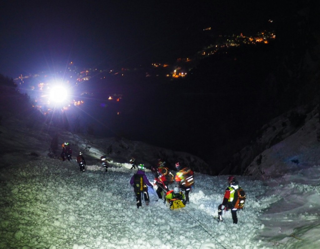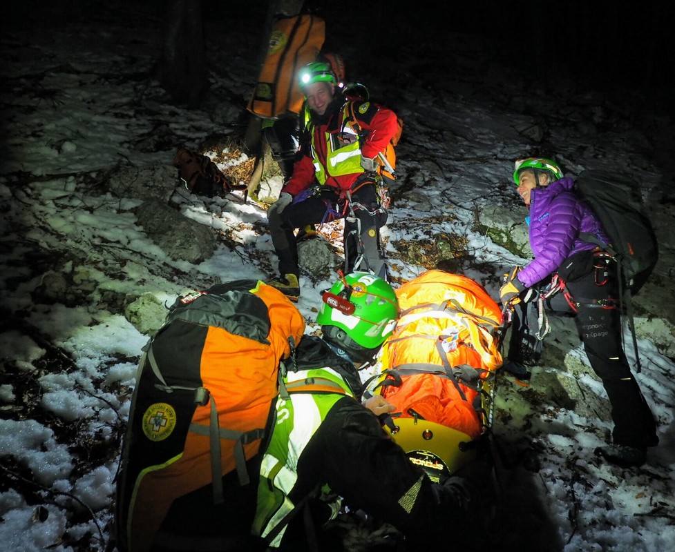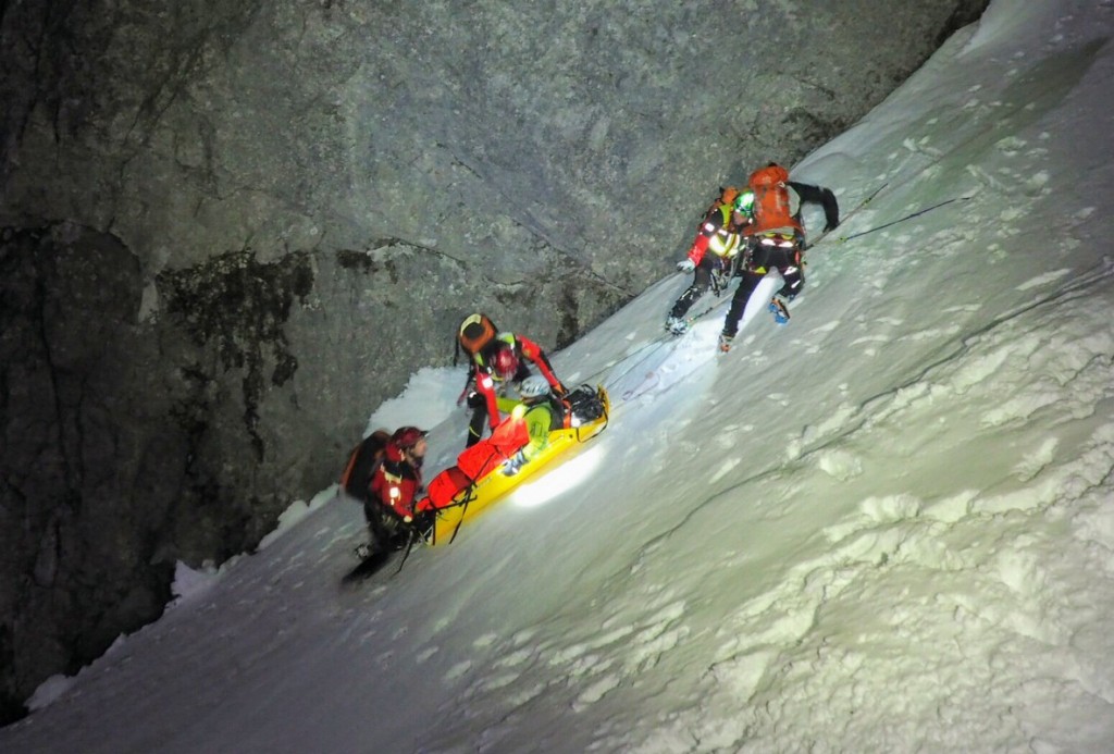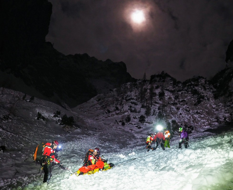 Altre squadre, circa 16 tecnici, si sono preparate con l’attrezzatura e hanno risalito a piedi il tratto fino al Passo dello Zapel, per il ricongiungimento con la squadra che stava operando in calata dalla parete con il ferito. Dopo le valutazioni sanitarie sul posto, è iniziata la seconda parte dell’intervento con una lunga discesa. Per mezzo di speciali barelle di immobilizzazione e trasporto su neve e con numerose riprese di calata, il ferito è stato infine portato a valle e consegnato all’ambulanza alle 2.30, dopo oltre 7 ore di intervento.