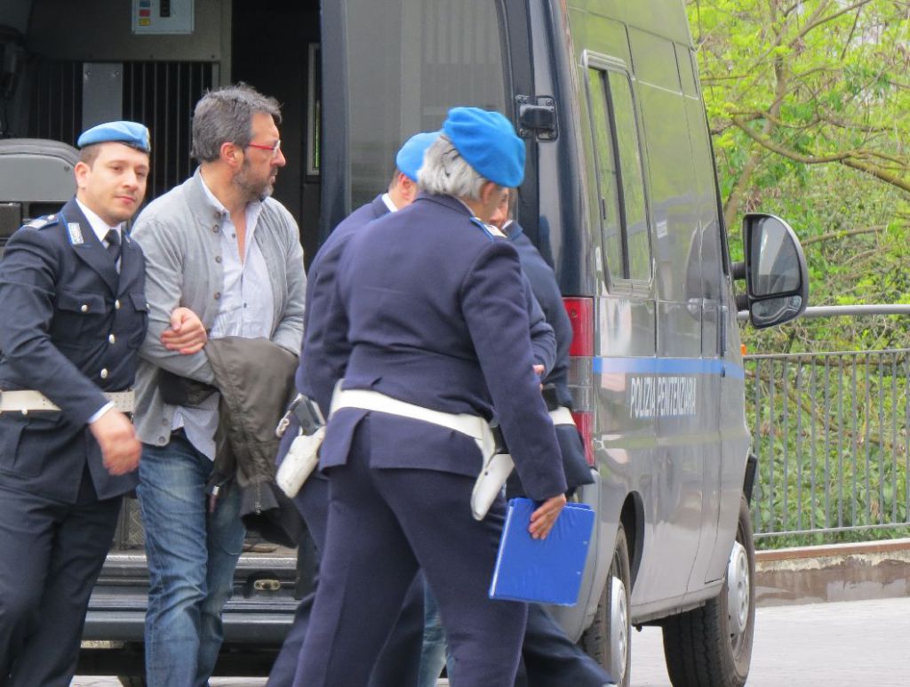 I due erano arrivati al palazzo di giustizia poco prima delle 11, a bordo di un mezzo della Polizia Penitenziaria. Nei loro confronti le accuse di concussione e concorso in concussione che mercoledì avevano fatto scattare gli arresti.