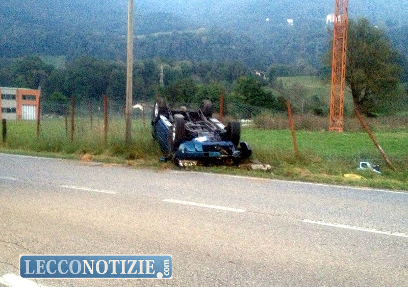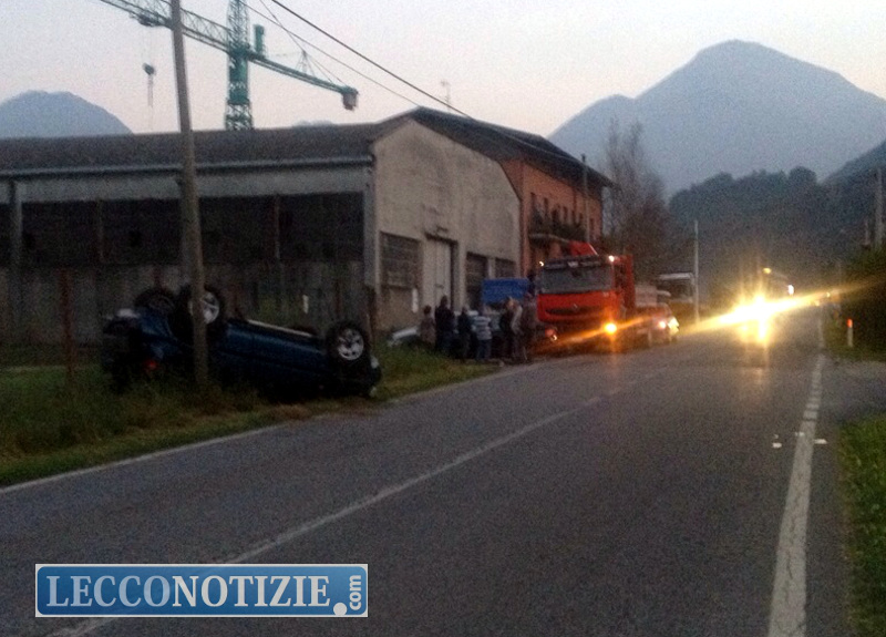 Attimi di paura a Pasturo, auto si ribalta lungo la Provinciale
