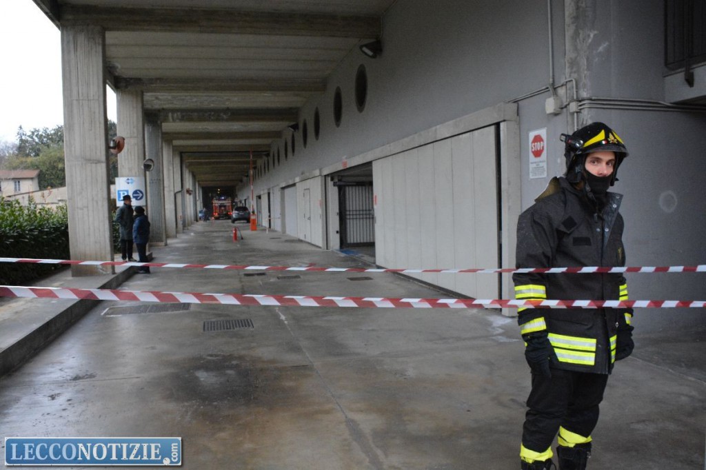 Subito è scattato l’allarme e sul posto sono giunti i Vigili del Fuoco che sono entrati nell’edificio scoprendo che al piano -1 dei garage del complesso “la Piazzetta” un’auto, una Citroen Picasso, stava prendendo fuoco.