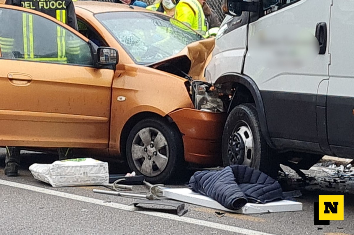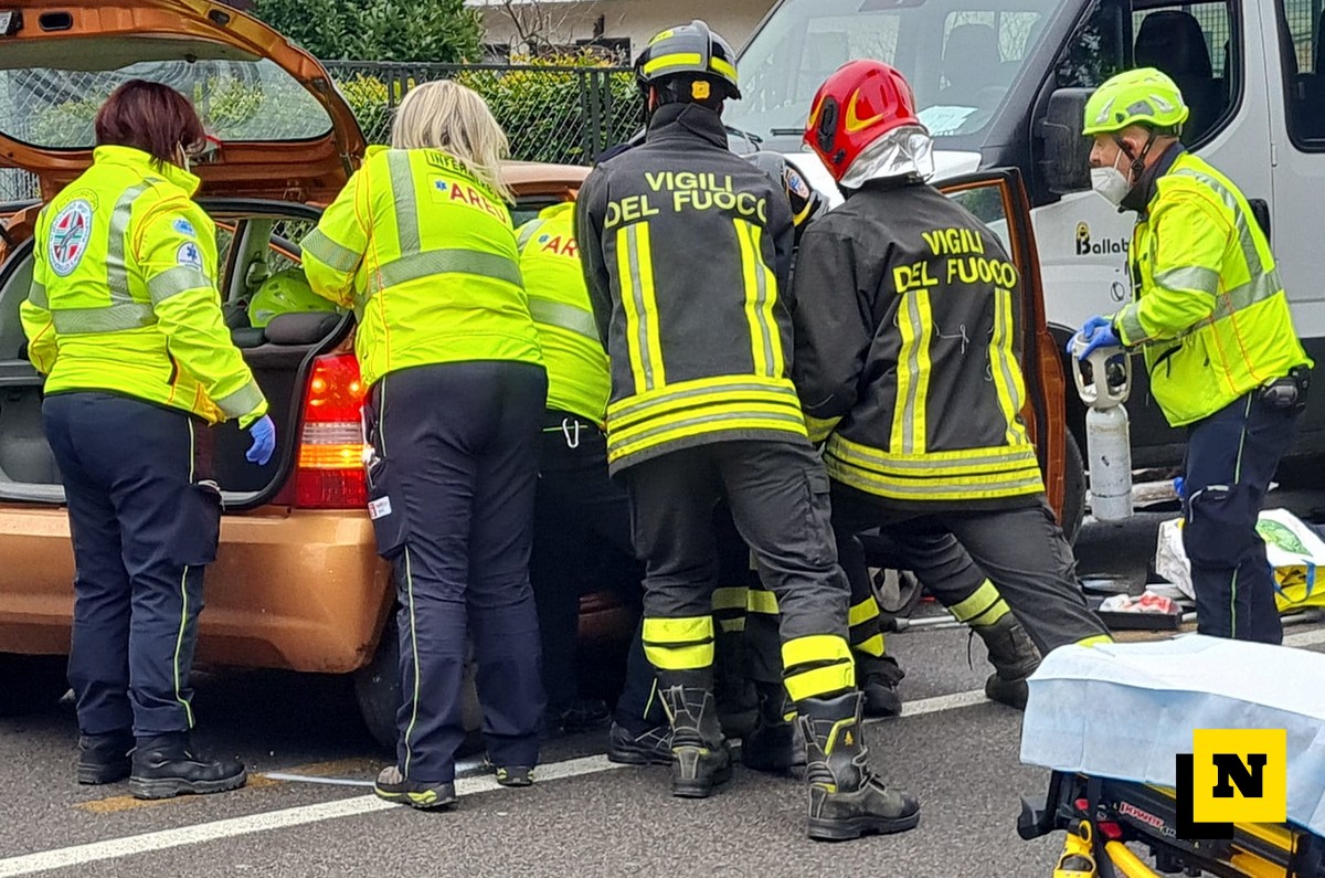 Prima è andata addosso allo spartitraffico all’altezza delle strisce pedonali, poi ha terminato la sua corsa contro il camioncino che stava transitando nella corsia opposta in direzione Valsassina.