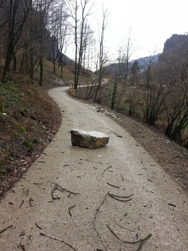 BALLABIO – Chiuso in via provvisoria il percorso ciclopedonale in località “Prato della Chiesa” di Ballabio dopo l’accertamento eseguito dal geologo, il dott. Massimo Riva, incaricato dal Comune.