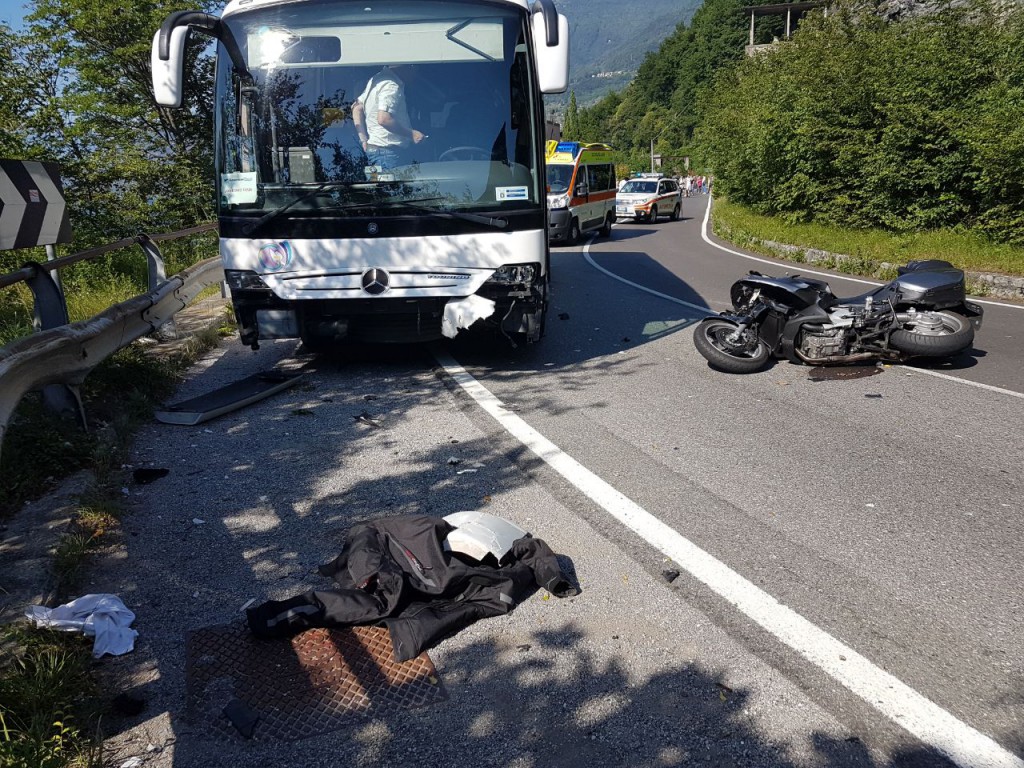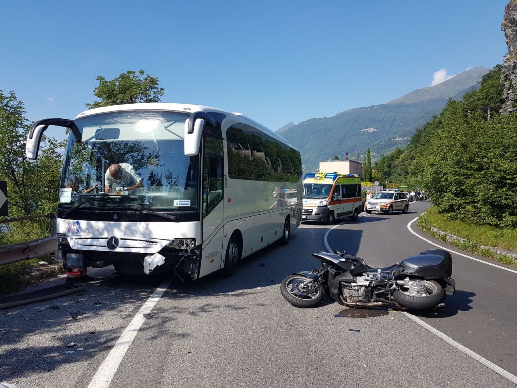 BELLANO – Uno schianto violentissimo quello avvenuto nel pomeriggio di sabato a Bellano: una moto si è schiantata frontalmente contro un pullman, provocando il ferimento del centauro.