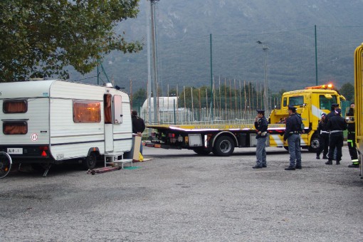 Le operazioni di sgombero hanno riguardato per ora tre roulotte,  i cui occupanti non hanno fatto mancare gesti di una blanda di disappunto ma tutto si è svolto sotto l’attento controllo delle Forze dell’Ordine. Alla fine, nonostante ci fossero pronti due carri attrezzi, gli occupanti hanno deciso di caricarsi le roulotte sui proprio mezzi e lasciare l’area.