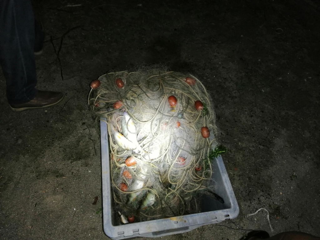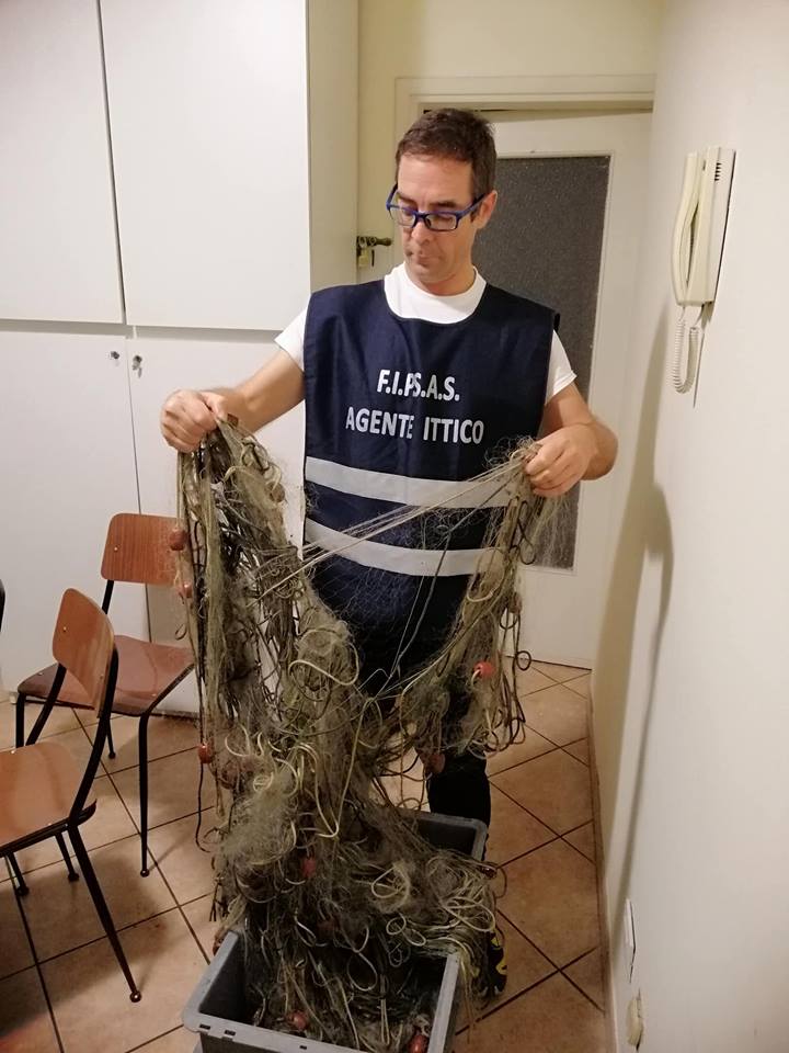 Sono in corso accertamenti per individuare il pescatore che ha posizionato la rete in violazione della normativa, in zona vietata alla pesca professionale.