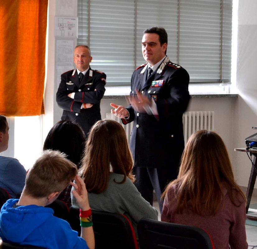 Con il tenente colonnello Italiano c’erano il tenente Simone Scafuri, il comandante della stazione carabinieri di Mandello luogotenente Francesco Minniti e il preside, Renato Cazzaniga. E’ stato proprio il dirigente scolastico a sollecitare gli alunni riuniti nell’aula magna dell’istituto ad agire sempre in modo tale che non vi siano luoghi d’ombra, dunque a far diventare la scuola “una casa trasparente”.