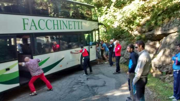 Giù tutti i passeggeri con il conducente che ha avuto il suo bel da fare per cercare di divincolarsi dalla brutta situazione e con alcuni dei passeggeri che hanno dovuto lavorare di braccia nel tentativo di dare una mano all’autista. Dopo 40 minuti abbondanti di manovre, spinte e imprecazioni tutto si è risolto al meglio: bus disincastrato, passeggeri di nuovo a bordo e meta raggiunta per quella che sarà una splendida giornata di sole ai Piani Resinelli.