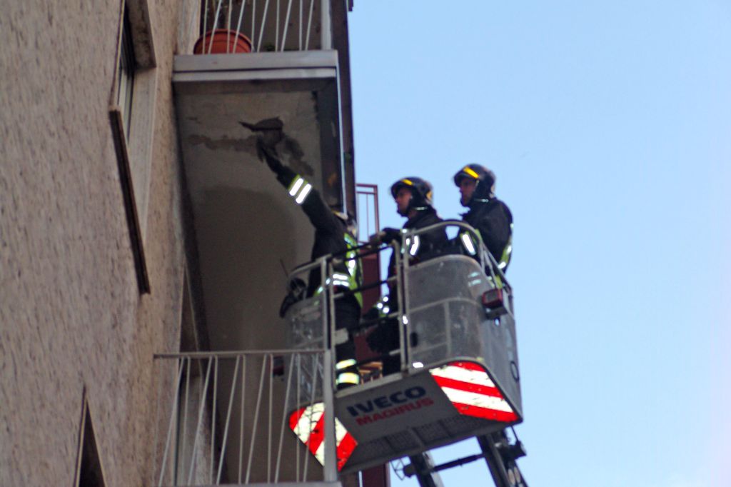 Capito quanto accaduto la donna ha spostato l’auto, mettendosi in sicurezza, ed ha atteso l’arrivo della Polizia Locale e dei Vigili del Fuoco. Questi ultimi, giunti con l’autoscala, hanno passato in rassegna tutti i terrazzini dell’edificio dove si era verificato il crollo, scrostandoli per bene in modo da evitare ulteriori cadute di materiale.