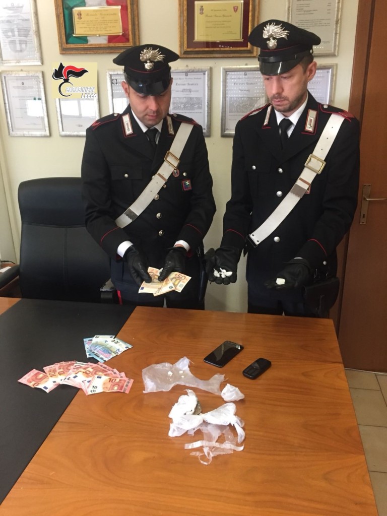I Carabinieri, impegnati in uno specifico servizio di contrasto allo spaccio di sostanze stupefacenti, hanno sorpreso il 23enne intento a cedere due dosi per un grammo complessivo di cocaina a due 30enni residenti in provincia di Lecco.