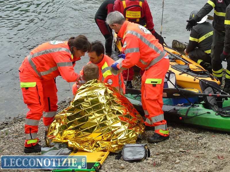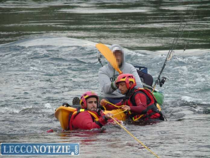 E’ successo intorno a mezzogiorno: stando a quanto appreso direttamente sul posto sembra che il giovane, 27 anni, stesse procedendo lungo l’Adda controcorrente quando si sarebbe fermato, restando incagliato in un rialzamento artificiale del fondale costruito per ‘spezzare’ la corrente.