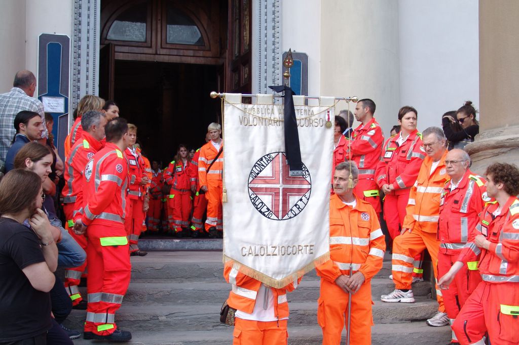 CALOLZIO – Una lenta processione di divise rosse e arancioni del Soccorso Calolziocorte ha accompagnato verso l’ultimo viaggio il giovane volontario, Stefano De Nitto, il 21enne residente in paese e scomparso nel tragico incidente stradale a Vercurago.