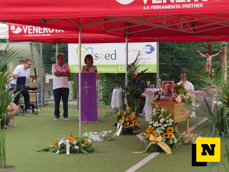 Hanno chiuso i figli Nicolò e Mattia: “Ciao pà…cosa cavoli hai combinato? Abbiamo voluto darti l’ultimo saluto nel tuo campo, nella tua amata Polisportiva. Quando mamma chiedeva dov’eri, la risposta era sempre una: al campo. Ti promettiamo che qui il pallone continuerà a rotolare. Non abbandoneremo la Polisportiva. Guarda quanta gente sei riuscito a portare su questo prato: neanche invitando i giocatori dell’Inter sarebbe venuta così tanta. Ti ringraziamo per ciò che sei stato e continuerai ad essere. Stai vicino alla mamma, noi non la lasceremo mai sola.”