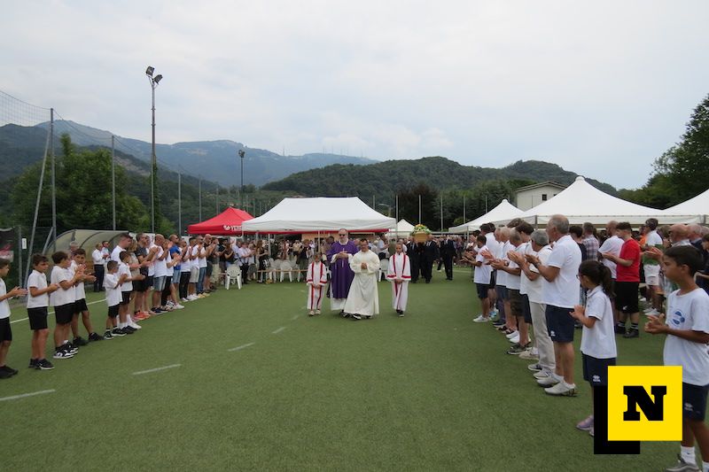 Alla cerimonia funebre erano presenti in tantissimi. I volti dei bambini e dei giovani atleti della Polisportiva in divisa, i sorrisi trattenuti tra le lacrime, gli amici, i volontari, le istituzioni. In prima fila, stretti nel dolore, la moglie Stefania e i figli Nicolò e Mattia, circondati dall’affetto di un’intera comunità che si è stretta alla famiglia Caroli con discrezione e rispetto.