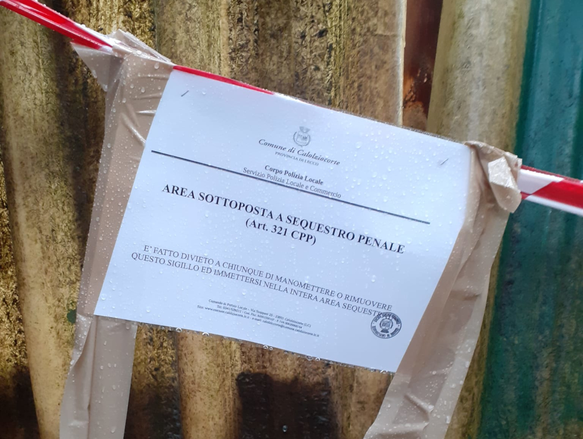 CALOLZIOCORTE – L’area privata in località Foppenico, lungo via alla Cascata e adiacente al torrente Serta, è stata posta sotto sequestro dalla Polizia Locale di Calolziocorte, come testimoniano i sigilli visibili.