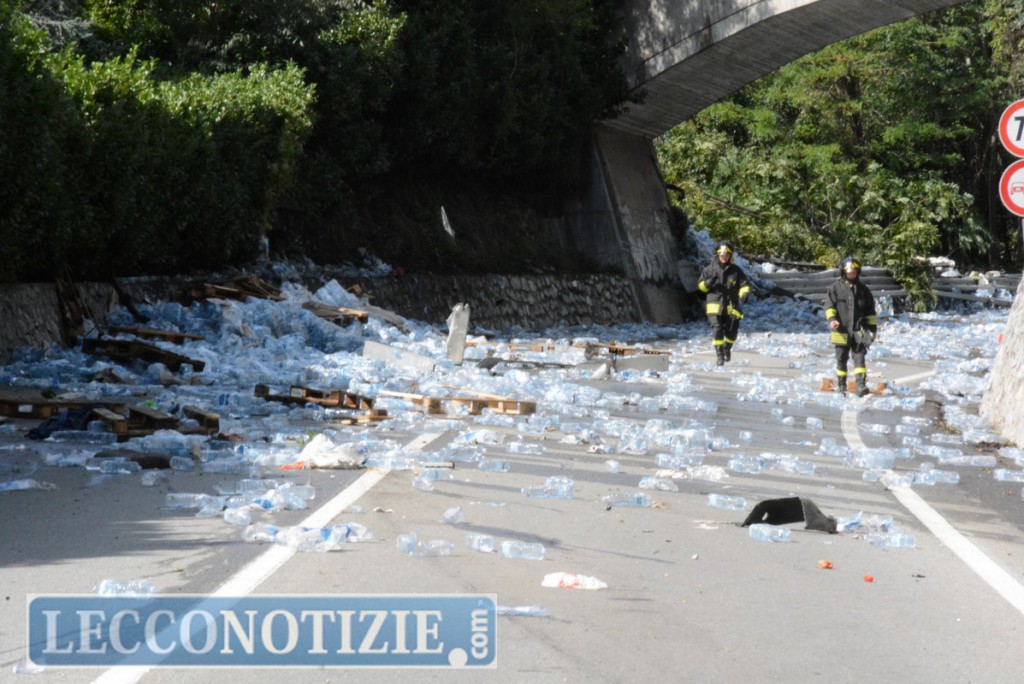 Per ripulire il tratto di strada invaso dalle bottiglie ci è voluto tutto il pomeriggio, con inevitabili conseguenze alla viabilità cittadina, soprattutto da e per la Valsassina. Il raccordo è stato riaperto pochi minuti dopo le 19.
