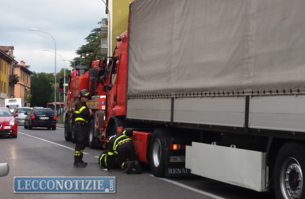 LECCO – Mattinata “nera” per la viabilità lungo la Lecco-Bergamo a causa di un camion fermo in panne all’altezza di Maggianico, fermo sulla corsia in direzione del centro città, su Corso Emanuele Filiberto.
