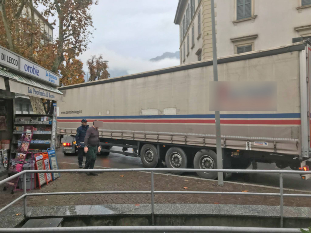 LECCO – Mattinata da dimenticare per il conducente del tir rimasto bloccato a lungo in piazza Manzoni a Lecco, non riuscendo a divincolarsi con il bilico lungo la strada del centro città.