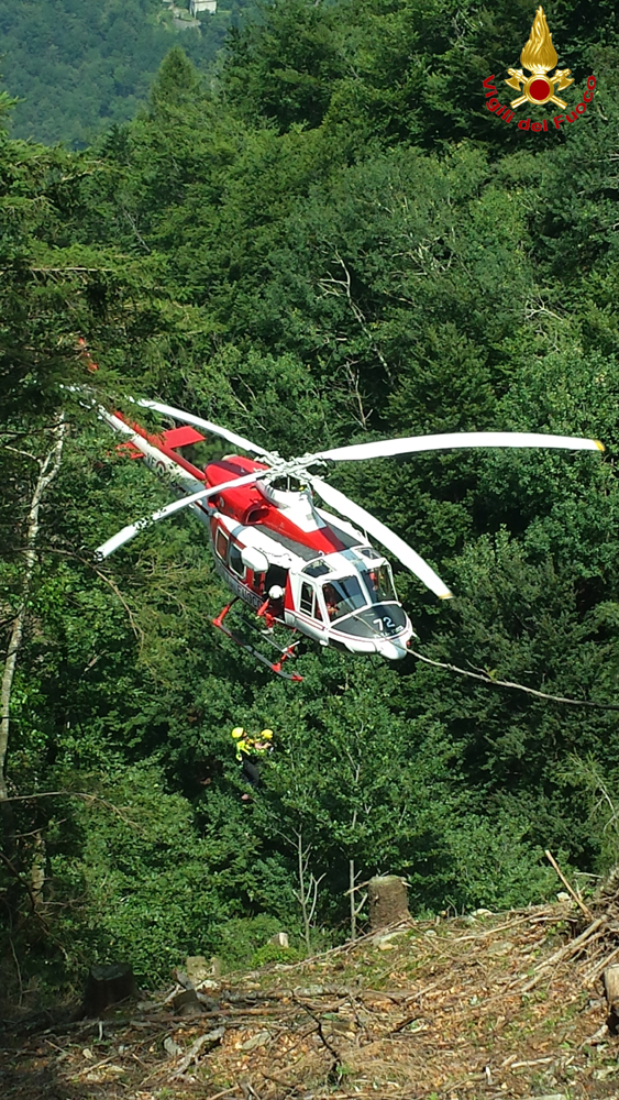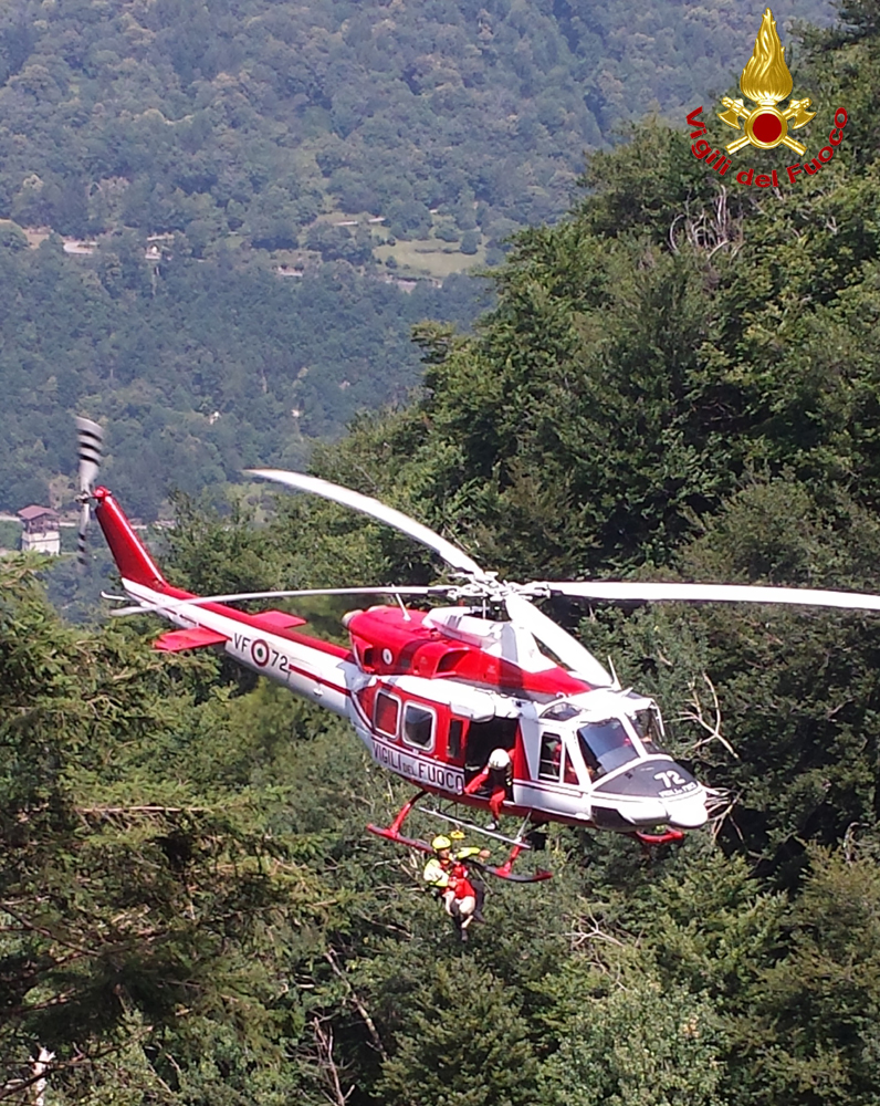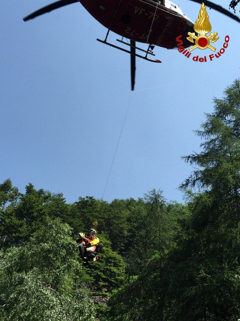Così, intorno alle 11.20, due squadre dei Vigili del fuoco sono intervenute insieme all’Elicottero VF Drago 72.