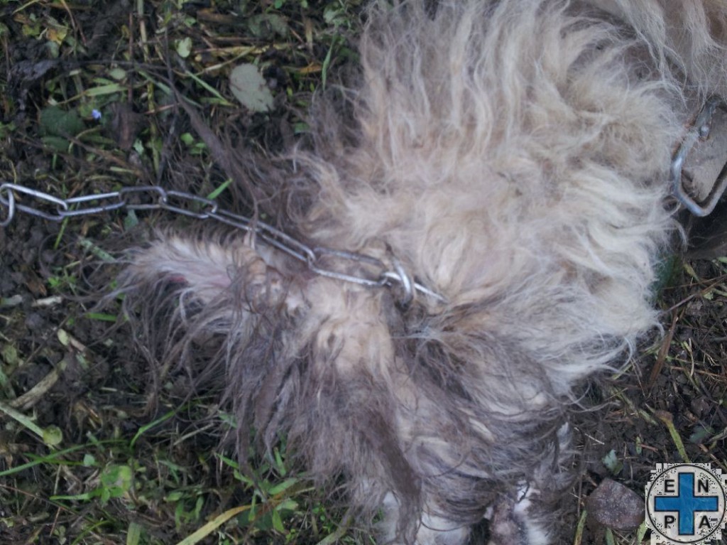 Tutti e quattro i cani sono stati infatti rinvenuti, catena al collo, a penzolare su una piccola scarpata che si affaccia alla strada. Il loro proprietario, un contadino della zona, li avrebbe infatti legati a delle piante all’estremità del campo, in prossimità della discesa. Per cause incerte, i cani si sarebbero però agitati finendo giù per la scarpata e rimanendo strangolati dai collari a strozzo che indossavano.