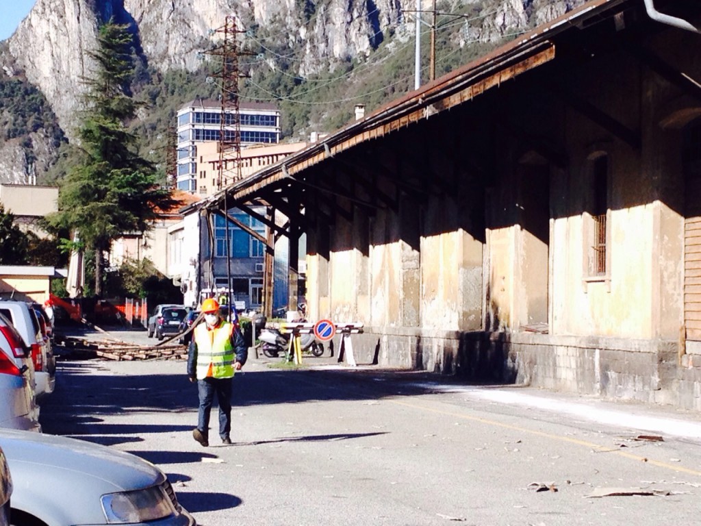 LECCO – Treni bloccati dalle 14 di mercoledì a causa dei danni causati dal vento. Si è infatti verificata la caduta di una grossa parte di copertura del tetto di un vecchio edificio usato come deposito e adiacente ai binari, situato all’altezza di via Sassi.