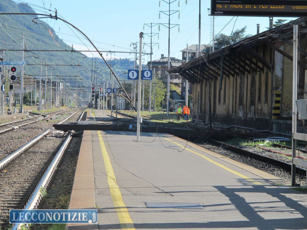 Il materiale è finito in parte ad ostruire il binario tronco e parte del primo binario e il traffico ferroviario è stato interrotto per consentirne la rimozione. Trenord avvisa di ritardi fino a 60 minuti sulle tratte tra Lecco – Milano, Lecco Milano via Molteno, Lecco-Bergamo segnalando un guasto agli impianti: il crollo ha infatti danneggiato la linea elettrica e si è reso necessario, per ragioni di sicurezza, togliere la corrente alla linea ferroviaria nei pressi della stazione.