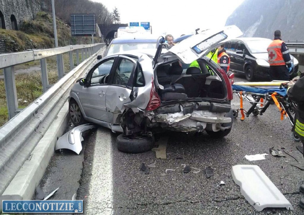 L’incidente in direzione Sondrio, sul rettilineo all’uscita dalla galleria Le Betulle: proprio in quel tratto, intorno alle 15, sostava in panne la Citroen C3 condotta da una donna residente a Morbegno; d’improvviso la vettura è stata travolta dalla Bmw condotta da un 48enne che non sarebbe riuscito ad evitare la C3, innescando l’incidente.