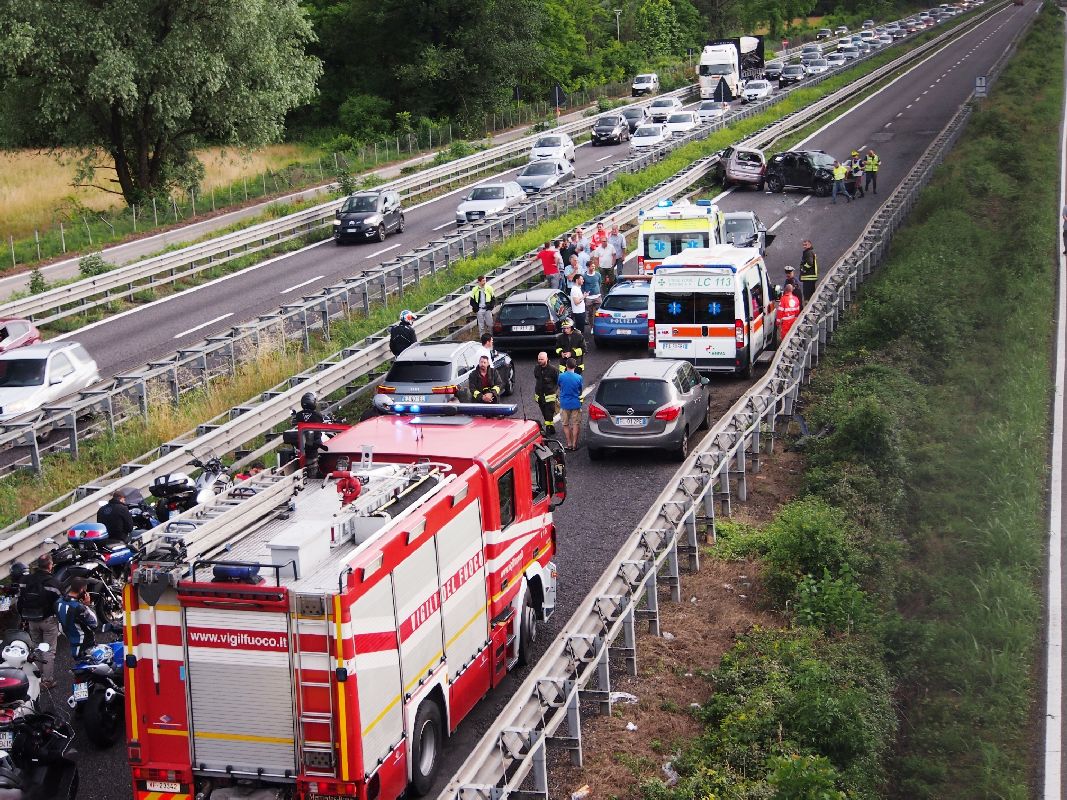 La SSS36 è bloccata in direzione sud e il traffico è paralizzato, con lunghe code per chi viaggia verso Milano.