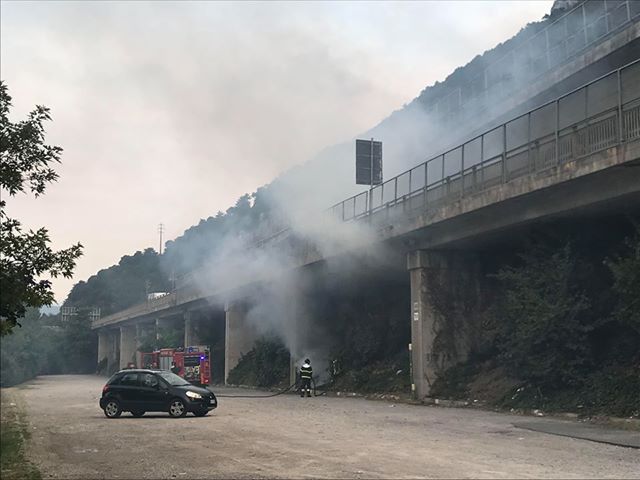 LECCO – Una coltre di fumo si è levata in prima mattinata sopra la statale 36 nella zona dello svincolo dell’Orsa Maggiore: ad andare a fuoco delle sterpaglie nel parcheggio del Pradello, sottostante al cavalcavia della super.