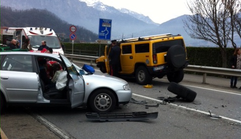 PESCATE – Incidente in mattinata, poco dopo le 9, in via Roma a Pescate. Due le auto coinvolte nel sinistro, una delle quali è un grosso fuoristrada Hummer che nell’impatto con la seconda vettura, che procedeva in direzione opposta, ha perso la ruota anteriore sinistra.