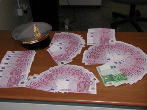 Sottoposto ad un approfondito controllo sulla persona, da ogni tasca della giacca sono spuntati piccoli mazzetti di banconote raggruppate per taglio, per un ammontare complessivo di 50.000 cui si aggiungevano, a quel punto, i 320 euro contenuti nel portafogli.