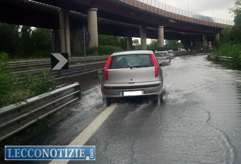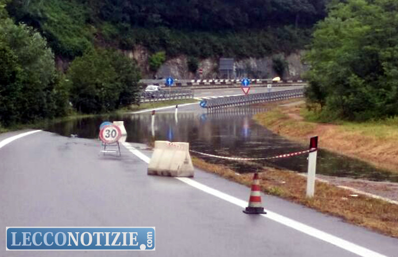 CIVATE – Le forti piogge scese nelle ultime ore hanno fatto esondare il lago di Annone che ha invaso completamente la carreggiata Nord nel comune della Strada Statale 36.